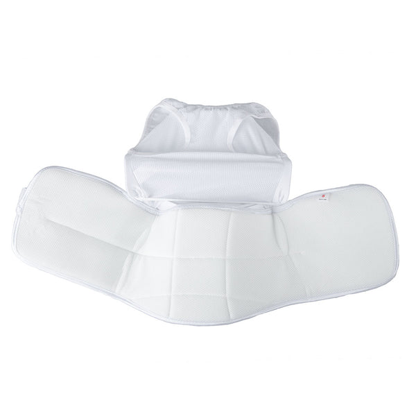 The WKF Approved Female Body Guard with Breast Plate is upgraded to now feature an injection molded plastic breast plate. Upgraded protection now covers the body, breast and underarm zones. It is WKF Approved, and designed for all Kumite and martial arts purposes, with a unique design made especially for women. The protective body guard panels sit just below the bust line, with a lycra chest piece above in which in the breast plate sits. Many female athletes find this configuration more comfortable than a single full chest body protector.